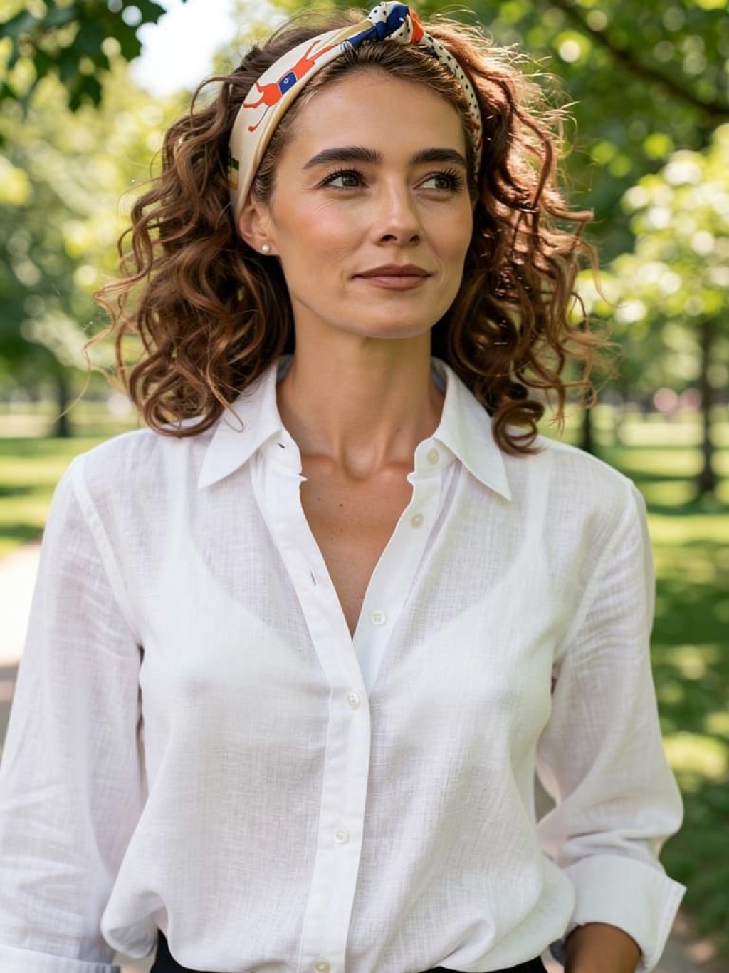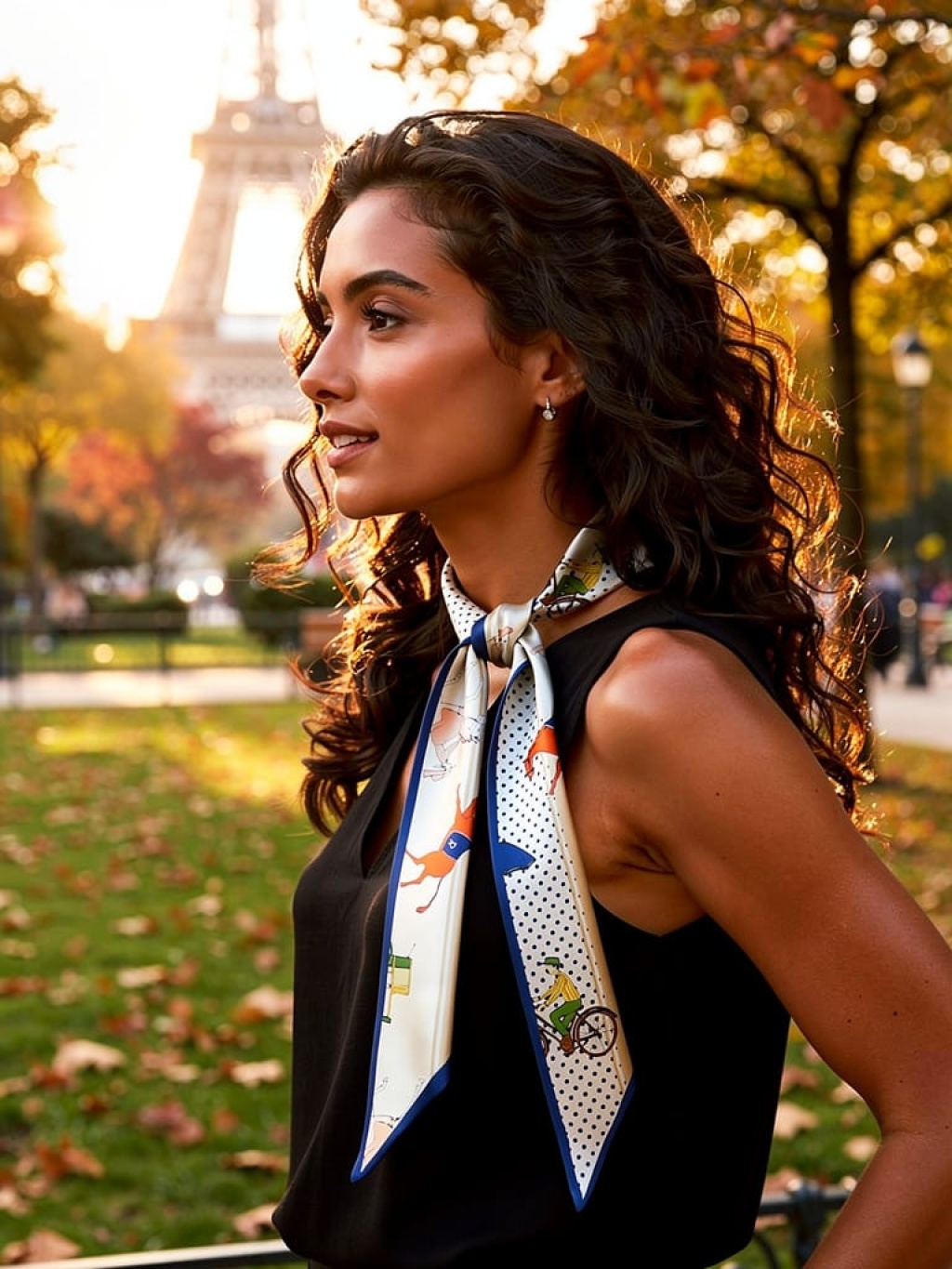 Kadın Retro Karakter Figürlü Puantiye Desenli Fular – Zarif ve Eğlenceli Stil