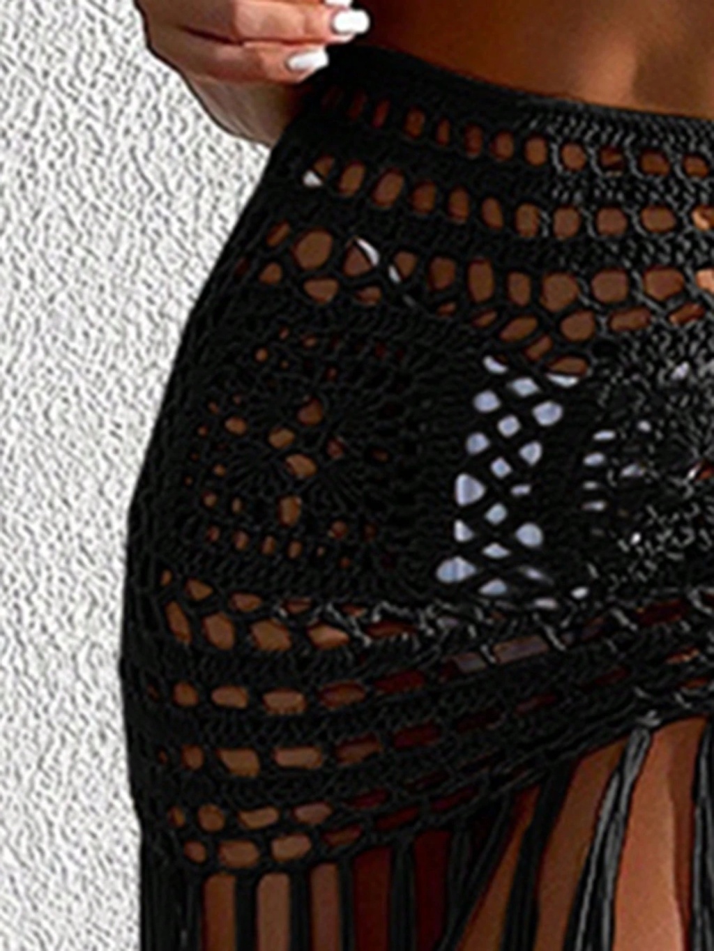 Siyah Bikini Etek,Kadın Bohem Tığ İşi Pareo– Bikini Üstü Şık Plaj Kombini-Plaj & Beach Club Kombin